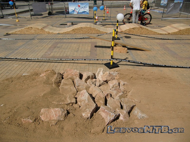 Το πρώτο πράγμα που αντικρίσαμε όταν μπήκαμε ήταν μια τεραστία σκηνή και μια ειδικά διαμορφωμένη πίστα για να δοκιμάζουν μικρά παιδιά τα ποδήλατα βουνού .....καλή αρχή! Το καλύτερο όλων ήταν ότι κατά την διάρκεια όλης της έκθεσης η ούρα από παιδιά για βόλτα στην πίστα δεν τέλειωνε ποτέ.